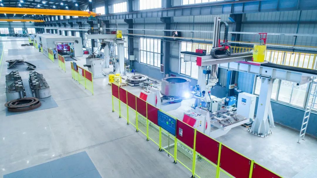 走進(jìn)江蘇海獅機(jī)械股份有限公司的智能焊接機(jī)器人車(chē)間,13軸智能焊接機(jī)器人正揮舞“手臂”,精準(zhǔn)“掌控”著洗衣龍外殼組件的焊接工作。