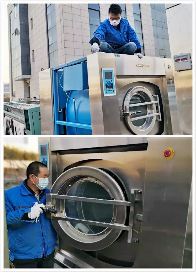 1月28日,山東臨沂市專門收治新型冠狀病毒感染者的臨時院區(qū)急需專用洗滌設(shè)備,用于日常醫(yī)護布草消毒抗菌洗滌,而春節(jié)期間,所有物流全部停運,無法發(fā)貨,在這緊急時刻,我司山東臨沂辦事處以陳軍主任為核心,莊緒虎、王洪余、陳慶森共四位同志,果斷放棄了休假時間,趕赴前線,他們深知疫情就是命令,責任重于泰山!在與院方第一時間對接,得知醫(yī)院需求后,在周邊老客戶中逐一調(diào)查協(xié)調(diào)現(xiàn)有設(shè)備,得知臨清賓館有一套現(xiàn)成設(shè)備在臨沂市羅莊區(qū)倉庫后,馬上和賓館協(xié)調(diào)征得同意,馬不停蹄,進行設(shè)備拆卸,歷經(jīng)39個小時持續(xù)高強度作業(yè),于29日下午三點將3臺設(shè)備安全運送到該隔離院區(qū),確保了院區(qū)醫(yī)護布草的消毒抗菌洗滌,為抗擊疫情的一線醫(yī)護人員帶來一份健康和安心。