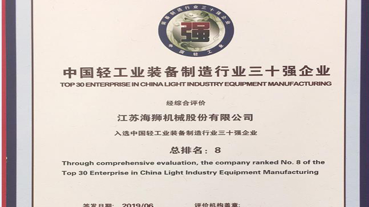 今日江蘇海獅機(jī)械股份有限公司榮獲了中國(guó)洗滌機(jī)械行業(yè)十強(qiáng)首位,中國(guó)輕工業(yè)裝備制造行業(yè)三十強(qiáng)企業(yè)第8位,中國(guó)輕工業(yè)科技百?gòu)?qiáng)企業(yè)第23位為加快建設(shè)強(qiáng)國(guó),推動(dòng)輕工裝備制造業(yè)做大做強(qiáng),本著嚴(yán)謹(jǐn)、公正、科學(xué)的原則,中國(guó)輕工業(yè)聯(lián)合會(huì)組織開(kāi)展了2018年度“中國(guó)輕工業(yè)裝備制造行業(yè)三十強(qiáng)企業(yè)”、“中國(guó)輕工業(yè)科技百?gòu)?qiáng)企業(yè)”評(píng)價(jià)