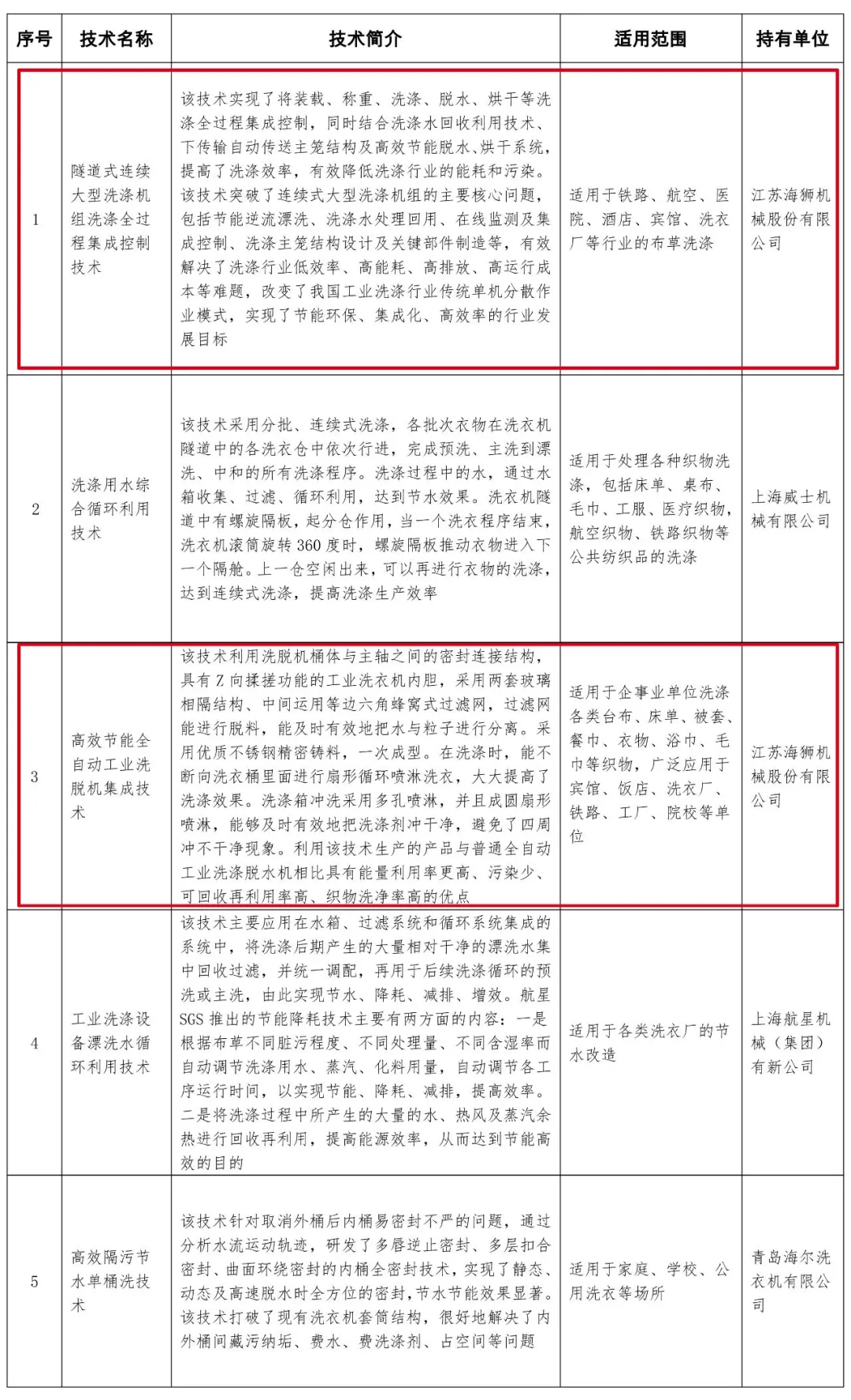 2020年11月16日,水利部、國家機關事務管理局關于公布國家成熟適用節(jié)水技術推廣目錄(2020年)的公告正式發(fā)布,為貫徹節(jié)水優(yōu)先方針,落實《國家節(jié)水行動方案》目標任務,強化節(jié)水科技創(chuàng)新引領,促進水資源節(jié)約集約利用,水利部、國家機關事務管理局共同征集了洗滌設備、衛(wèi)生潔具、中央空調等領域的節(jié)水技術。經專家評審、網絡公示,最后洗滌設備領域有4家企業(yè)5項成熟技術被收錄到《國家成熟適用節(jié)水技術推廣目錄(2020年)》中。江蘇海獅機械股份有限公司的隧道式連續(xù)大型洗滌機組洗滌全過程集成控制技術和高效節(jié)能全自動工業(yè)洗脫機集成技術被收錄到國家成熟適用節(jié)水技術推廣目錄之中。